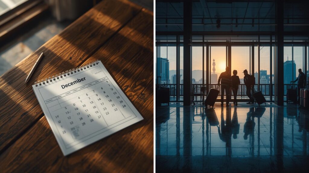 หลายคนอาจตั้งคำถามว่า ถ้าอยากสร้างวันหยุดยาวในเดือนนี้ต้องลาวันไหนดี คำตอบคือไม่ยากอย่างที่คิด หากเริ่มจากช่วงต้นเดือน วันศุกร์ที่ 5 ธันวาคมเปิดโอกาสให้ใช้สิทธิลาเพิ่มเติมเพียงไม่กี่วันก็กลายเป็นหยุดยาวได้ เช่น หากลาวันจันทร์ที่ 8 และวันอังคารที่ 9 จะเชื่อมวันหยุดต่อเนื่องตั้งแต่วันศุกร์จนถึงวันพุธ รวมเป็นวันหยุดยาวถึงหกวัน ซึ่งเพียงพอสำหรับการเดินทางไปต่างจังหวัด ไม่ว่าจะเป็นทริปสัมผัสอากาศเย็นในภาคเหนือหรือเที่ยวทะเลภาคใต้อย่างกระบี่และภูเก็ต